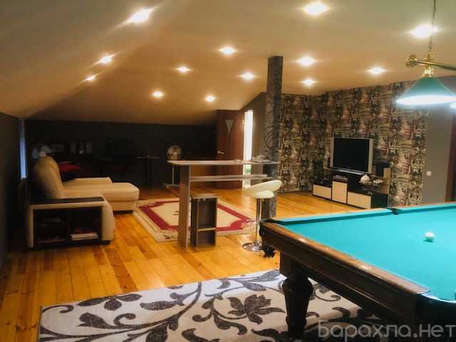 Коттедж в два этажа с мансардой. Стены из двух слоев блоков «бессер». Первый слой под природный камень. Внутри качественный утеплитель 100мм. Общая толщина стены 550мм. На первом этаже 130м2: веранда, кухня, холл с камином, санузел, техническая комната. Отопление - теплый пол. Второй этаж 136м2: три спальни, холл, санузел, зал для занятия спортом с инвентарем. Мансарда 110м2: большая комната, биллиард, барная стойка, отдельный санузел. В теплом подвале 24м2: автоматический газовый котел для водяного отопления второго этажа и мансарды, кладовая.